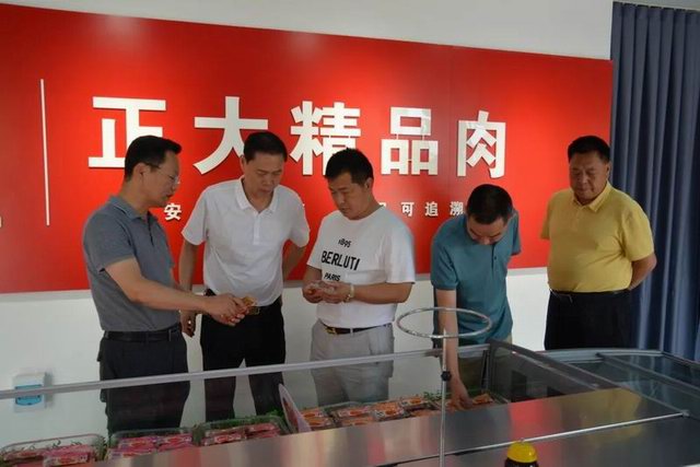 刘长河会长一行首先通过参观走廊参观了洛阳乐动网站生猪屠宰、分割加工、肉类食品深加工生产线及产品体验中心,参观结束后到公司三楼会议室进行交流座谈。